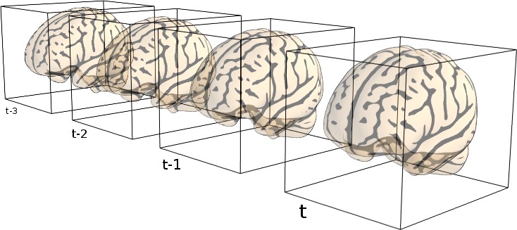 inputs (list of sequences of brain volumes).